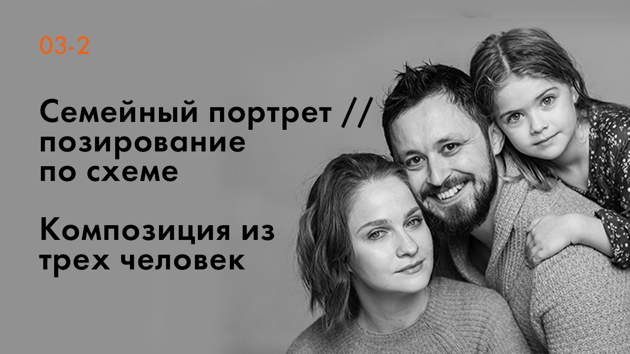 В этом видео вы научитесь снимать семейный портрет, располагать героев по специальной схеме, создавать композиции из трех человек.